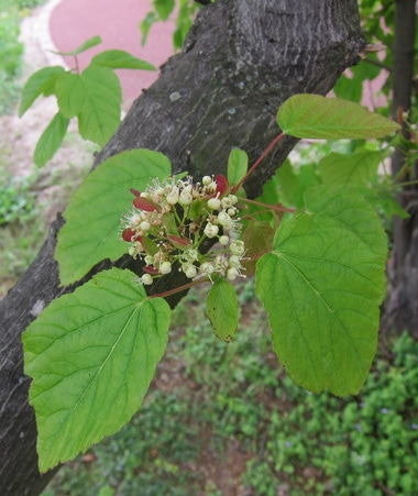 ∙ Inflorescences après les feuilles, en corymbe de fleurs à 5 pièces florales, aux 8 étamines insérées sur l’extérieur du disque nectarifère.