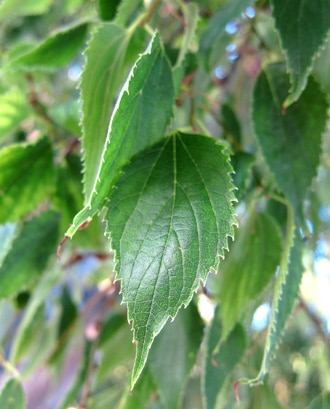 Longues de 5 à 10 cm, elles sont alternées, pétiolées (axe reliant la feuille à la tige), simples, ovales à elliptiques, la base est légèrement asymétrique ; le bord du limbe est nettement denté, mais pour sinensis le bord de la moitié inférieure n’est pas denté ; elles sont acuminées (pointues) ; présence de stipules (appendices foliacés ou épineux) caduques ; plus ou moins pubescentes (poilues) sur les 2 côtés ou d’un seul, elles présentent parfois un aspect assez rêche telle australis.