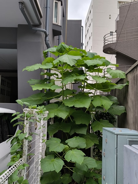 Paulownia est considéré comme ‘un poumon de ville’ grâce à ses nombreuses grandes feuilles qui purifient l’air en absorbant de très grandes quantités de dioxyde de carbone, de plus il offre de l’ombrage.