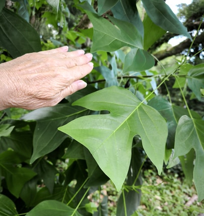 Pour tulipifera, les feuilles de 10 à 16 cm sont portées par un long pétiole de 10 cm. À l’automne, la feuille verte devient jaune d’or puis brune, le revers est légèrement glauque.